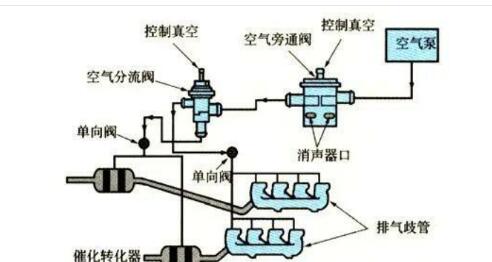 二次空氣噴射(Air Injection,即AI)系統(tǒng)的實質是將一定量的新鮮空氣引入排氣管或三元催化轉換器中,使廢氣中的有害氣體與空氣進一步燃燒,以進一步減少有害物的排放。