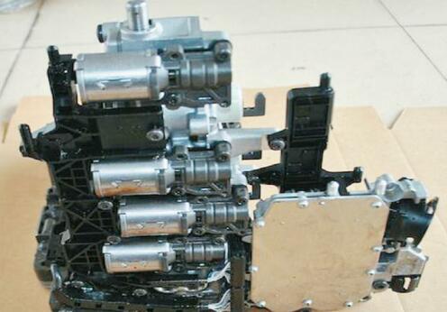 經(jīng)測量及線路方面的檢查,終于發(fā)現(xiàn)變速器外部圓形插頭內(nèi)有腐蝕情況,經(jīng)仔細(xì)處理后試車發(fā)動機每次都能順利啟動,但變速器的 P17D600離合器1壓力過高和P275500變速器油冷卻閥對正極短路的故障碼在試車時還是經(jīng)常出現(xiàn)。通過對變速器油液狀態(tài)進行分析,離合器燒蝕的可能性不大,應(yīng)該是液壓控制單元和線路板等故障。這樣干脆換了兩個容易出現(xiàn)故障的線路板(因為往往報冷卻閥故障時大部分都是線板中的內(nèi)藏線斷路導(dǎo)致)與一塊閥體(離合器1壓力不正常的可能因素)如圖1、圖2所示。
