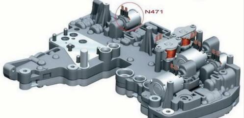 故障排除:把故障碼發(fā)給朋友后才知道,早期奧迪Q5使用的是第一代0B5變速器,該變速器中只有一個離合器冷卻的電磁閥N471,該電磁閥被安裝在變速器內(nèi)閥體上(如圖3、圖4所示),當(dāng)該電磁閥出現(xiàn)故障或線路出現(xiàn)故障時所記錄的故障碼應(yīng)該是P179D00 冷卻油閥電氣故障(N471電磁閥),一般來說大部分原因確實是線路板問題。而新款第二代0B5則有兩個油液冷卻閥:一個是N471為離合器冷卻的,另一個則被安裝在冷卻系統(tǒng)的管路上,該電磁閥叫N509,其所控制的是冷卻液管路。