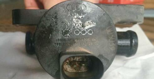 這是因為第二代0B5帶有創(chuàng)新型ITM熱量管理功能,變速器油液在低溫狀態(tài)時先完成加熱過程,在高溫時完成冷卻過程。因此變速器上面又多了一個既有加熱功能也有冷卻功能的獨立加熱器,而這個N509本身問題較多,經(jīng)常會出現(xiàn)泄漏,泄漏的冷卻液將會對電磁閥插頭進行腐蝕,從而使電磁閥線路形成短路,最終P275500變速器油冷卻閥對正極短路的故障碼被設(shè)定出來。找到N509后斷開插頭確實直接看到問題所在(如圖5所示),更換全新N509(如圖6所示)后故障徹底得到解決。