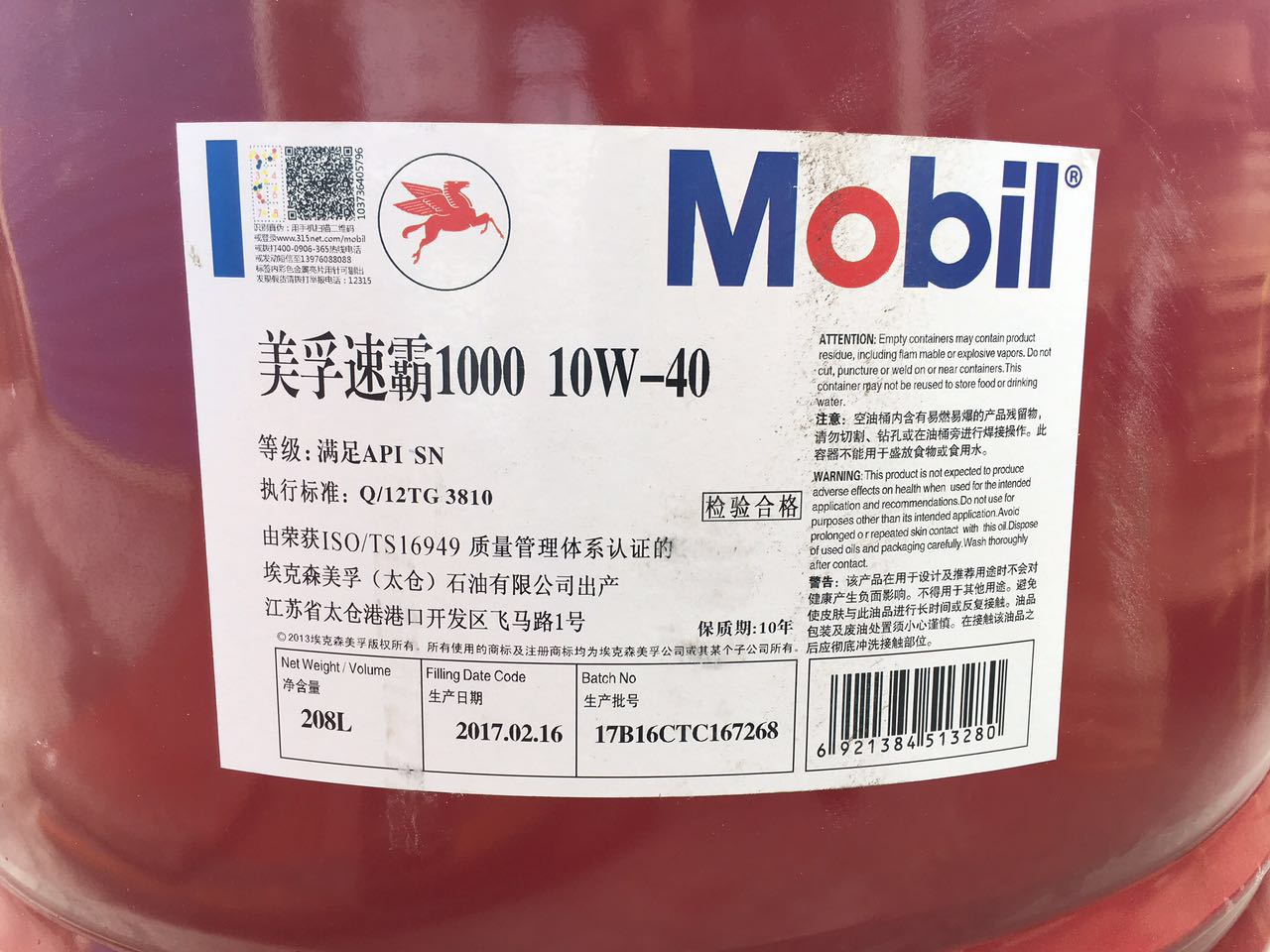 美孚速霸1000 5w-30 SN級礦物機油 美孚潤滑油 208L
