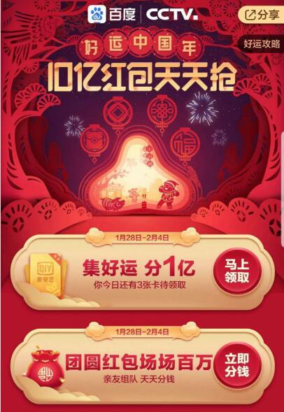 第一部分是集好運分1億(活動時間為1月28日-2月4日):