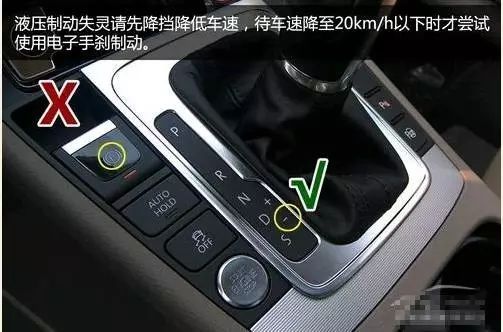 如高速行駛時,液壓制動系統(tǒng)突然失靈,駕駛員使用電子手剎進行緊急制動將有可能導致車輛甩尾甚至掉頭,非常危險。出現(xiàn)上述情況時,建議還是降擋利用發(fā)動機制動降低車速后再嘗試利用電子手剎制動車輛。