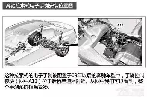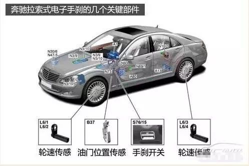 了解了拉索式電子手剎的結構后,我們再來了解一下其工作邏輯。我們下面以奔馳配置于09年以后車型的拉索式電子手剎為例進行說明。