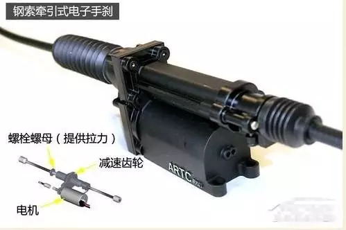 鋼索牽引式電子手剎的制動執(zhí)行機構與傳統(tǒng)手剎無異,同為制動蹄式,只是把手動的拉索改為電動形式。正是因為鋼索牽引式電子手剎的加裝成本低,因而更利于車型的設計變更。